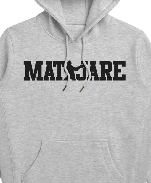 Sudadera estampada con las letras Matajare y la silueta del disparo de Migue Benítez. Las talla S y la talla XL van con el cordón de la capucha color blanco natural.